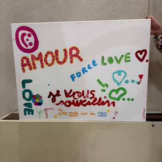 Lundi 25 novembre 2024, en partenariat avec l’association Fil d’Arianne à Pontarlier, j’ai eu l'occasion de proposer, aux côtés de nombreux autres acteurs, un atelier graffiti d’expression libre. Beaucoup de jeunes des écoles et de femmes se sont prêtés au jeu : ils ont pris le temps d’ajouter de la couleur et d’afficher des mots positifs sous forme de soutien, ainsi que des phrases évoquant parfois leur propre vécu.